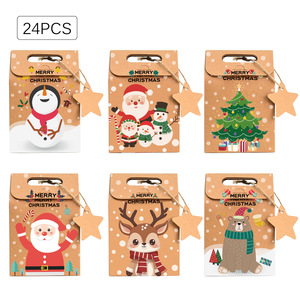 新しいアイデアクリスマス喜糖箱プレゼント包装箱雪花クラフト紙袋祝日礼箱24個卸売りクロスボーダー