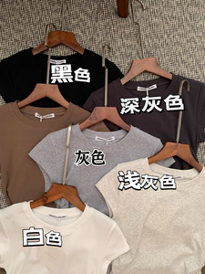 純綿のアメリカンギャルの肩の半袖の白いtシャツの女性の夏は腰のタイトなデザイン感があります。
