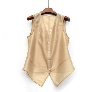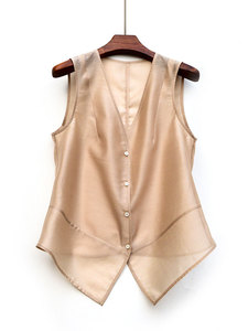 新しいテンセル生地サマーベストクールベストレディーステンセルジャケットショートリヨセルアウターウェアわずかに透け感