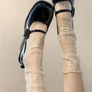 黒と白の短い中長筒のすねの山のガラスの水晶のレースのストッキングの子供の夏のメアリー珍のネットの糸の超薄い金