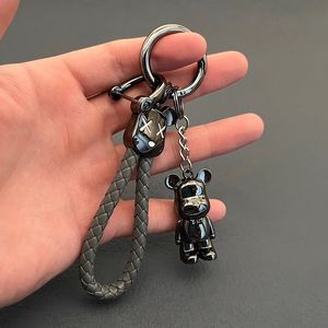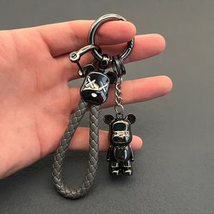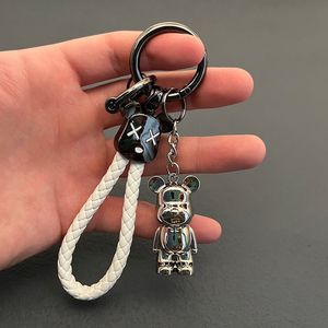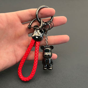 编织绳汽车钥匙扣暴力熊创意3D立体小熊挂件男女士情侣锁匙链圈环