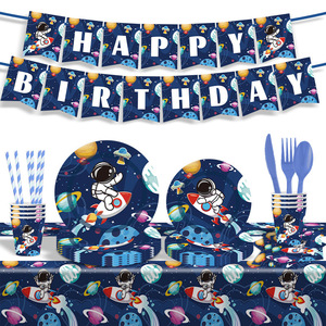 宇宙飛行士宇宙星空テーマ使い捨て食器セット紙コップテーブルクロス使い捨て誕生日パーティー
