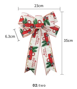 クロスボーダーのクリスマスの蝶結びは麻の小さいトラックの図案のプリントのクリスマスツリーの装飾の蝶結びのシーンをまねて飾ります。