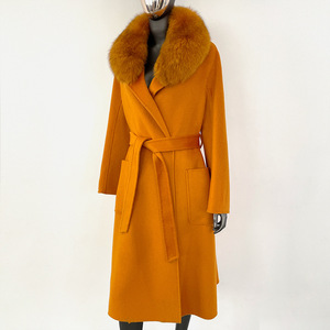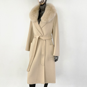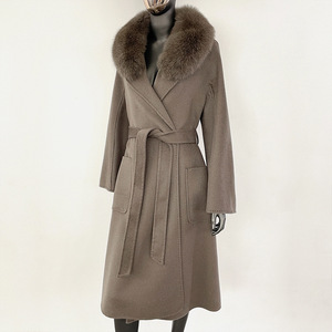 秋冬水波紋両面ウールコート レディース 高級感 ゆったり 韓国風ウールコート フォックスファー襟付き