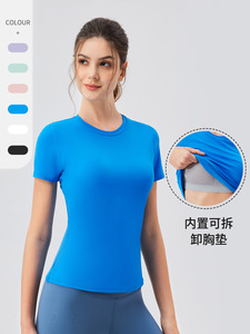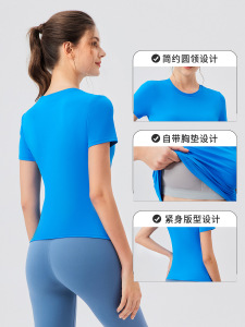 女性の夏のヨガの半袖は胸のパッドの裸感があります。