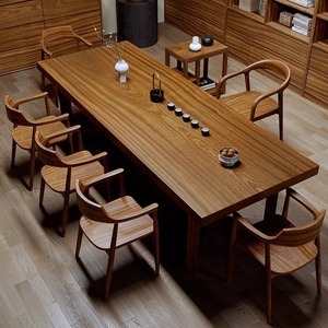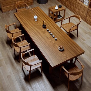 新中国式実木大板茶テーブルと椅子の組み合わせ禅意シンプル家庭用リビングルーム茶台事務室はお茶のテーブルを接待します。
