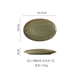 12インチ粗陶楕円円盤-灰蘭