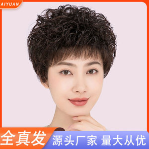ショートヘアのかつらの女性の全頭カバーのお母さんの本物の髪カバーのファッション的な中高年の短いカールの自然なふわふわしたかつらカバー