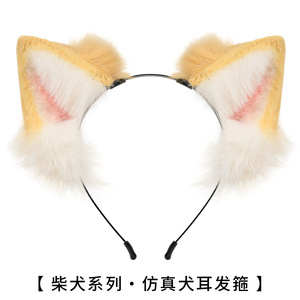 手作獣耳カチューシャ立体赤犬ぬいぐるみ柴犬コスプレ模造獣耳可爱いパフォーマンスアイテム