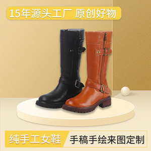 ブーツの純粋な手作りの女性靴メーカー2024夏の新しいレトロな本革マーティンブーツの女性靴の柔らかい底は足を疲れさせません。
