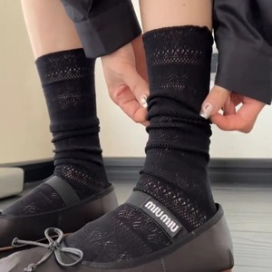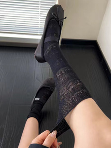 夏の女性の薄いレースのふくらはぎの靴下の氷糸の靴下の透かし彫りの通気性の黒色は汗を吸い込みます。