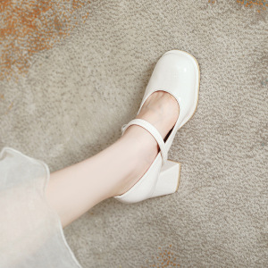 MZ-2のフランス式のメアリー珍の靴の女性の小さいサイズの33の丸い頭の小さい革靴の太いです。