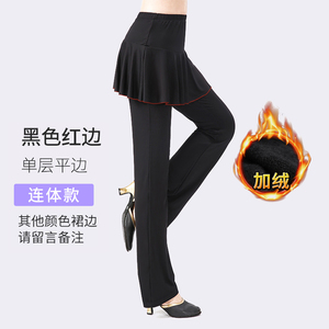 黒色シングルレイヤー 赤縁 スカートパンツ(裏起毛)☆