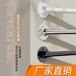 花型ユニバーサル伸縮ロッド衣類乾燥ロッドステンレス鋼面取りシャワーカーテンロッドカーテンロッドワードローブ衣類吊り下げ接着剤フリーデュアル目的