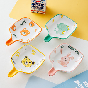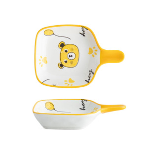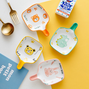 漫画のディスペンサーのかわいい小皿は取っ手の釉薬を持っています。