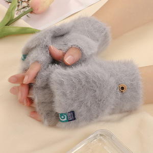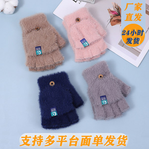 防風パイル手袋女子冬保温学生露出指カバー手袋戸外半指厚手写字手袋
