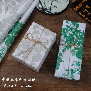 オリジナル中国風シドニー紙緑花灰花牡丹図プレゼント紙高級アクセサリー花束包装材料卸売り