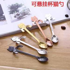 漫画の猫のマグカップの猫のスプーンは長い柄のスプーンのデザートをかき混ぜます。