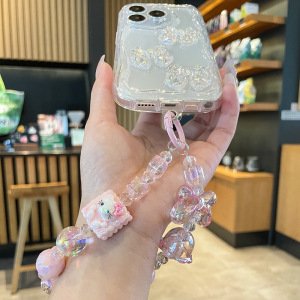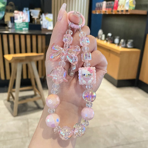 オリジナルデザインハローキティクロミ漫画携帯電話ケースチェーンカメラペンダント手描きビーズ携帯電話チェーン