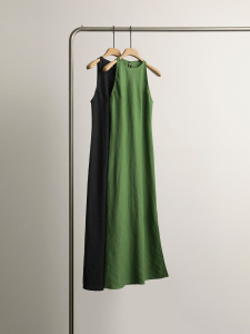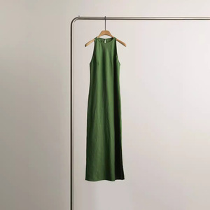 女性用のリラックスしたリラックスしたリネンソリッドカラーホリデーデザインスリムボディドレス