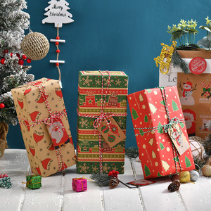新しいレトロクラフト紙包装紙クリスマスプレゼント包装紙雪だるま鈴クリスマスツリーギフト紙