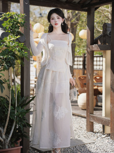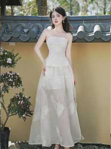 6864 # 実写スポット古典刺繍ベスト半身スカートセット + 40