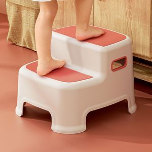 子供の洗面台は腰掛けを踏んで足の腰掛けをします。