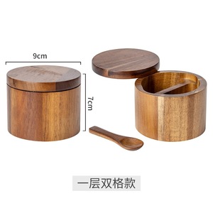 アカシアの木の塩の缶の木の調味料の箱の木製の胡椒の粉の箱の台所の調味料の瓶の塩の箱は調味料の缶を収納します。