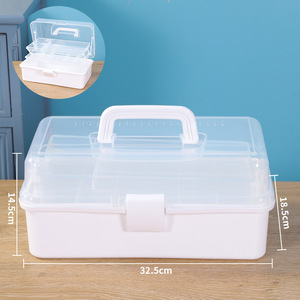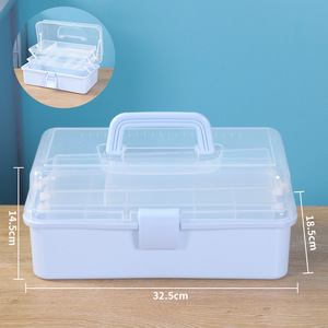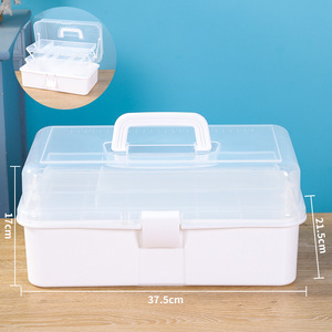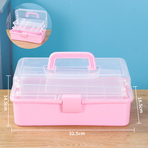 折り畳み可能三層手提げ収納ボックス大容量金物工具箱美甲箱美術雑物プラスチック収納ボックス