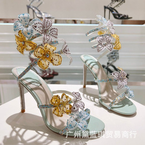 RC シルクホットダイヤモンドレースメッシュフラワー装飾ヘビ巻き妖精美しいハイヒールサンダル