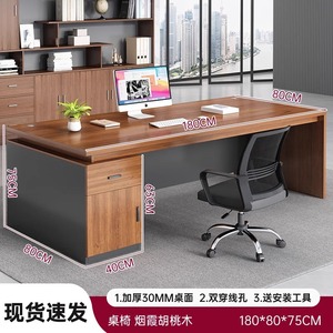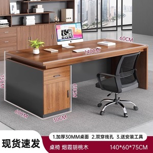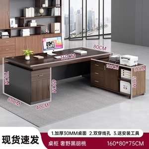 【主管テーブル + サイドキャビネット】160*80cm贅沢野黒胡桃