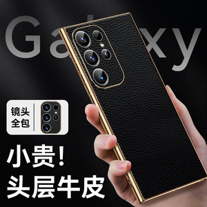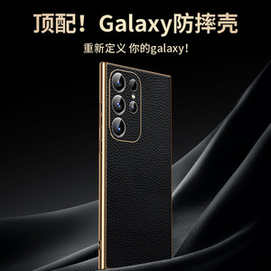 【シームレスドロップシッピング】SX25Ultra 携帯電話ケース 電気メッキ溝付き 本革ソフトシェル 細穴 落下防止 ライチ柄
