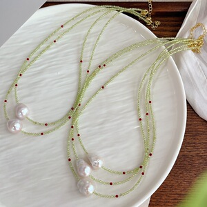天然オリビン天然淡水バロック真珠鎖首鎖ネックレス