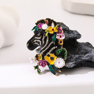メーカー直供合金釉薬彩シマウマブローチレトロ個性創意動物シリーズレジャーパーティー服アクセサリー