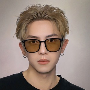 男性用ブラックフレームブラウンサングラス、ハンサムな日よけと紫外線防止サングラス、女性用韓国風ファッショナブルなスクエアフレームキャットアイメガネ