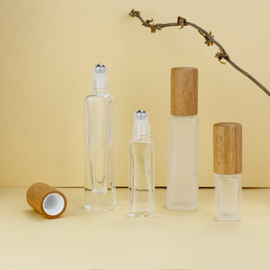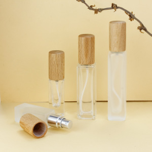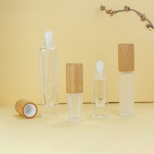ガラスビーズ+ブナ材蓋付き、5mlフロストスクエアボトル543、ガラス