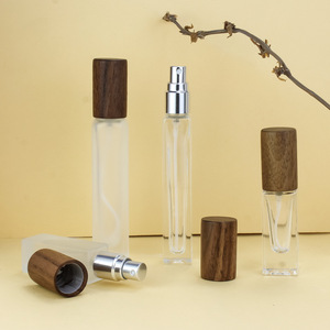シルバーノズル+ウォールナット蓋付き、10ml(量不足)フロスト角ボトル571、ガラス