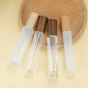 スチールボール+ウォールナット蓋付き、10ml(量不足)フロスト角ボトル571、ガラス