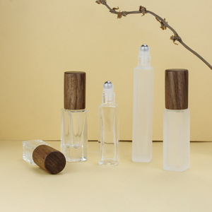 ガラスビーズ+ウォールナット蓋付き、5mlフロストスクエアボトル543、ガラス