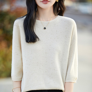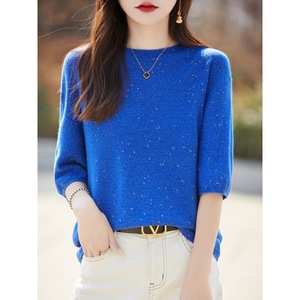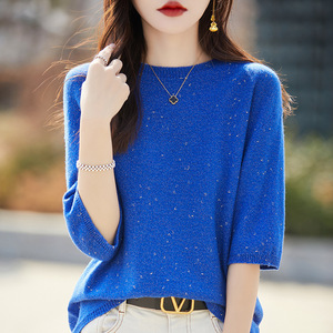 春夏怠惰金豆紗100純毛半袖女性高級セーターtシャツ洋気気質コウモリ五分袖