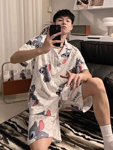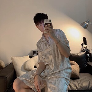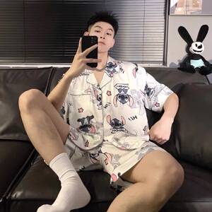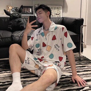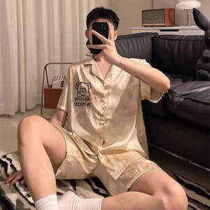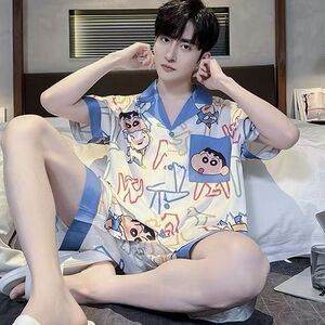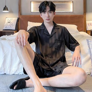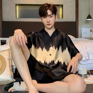 パジャマ男の夏の薄いタイプの氷糸の半袖の半ズボンの青少年の学生は男性のタイプの部屋の服のスーツを着ることができます。