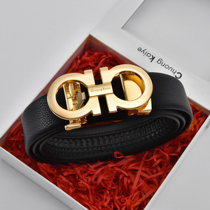 ChuongKaiye男性ベルトビジネス高級ベルト本革自動バックルズボンバッグ純牛革男性プレゼント