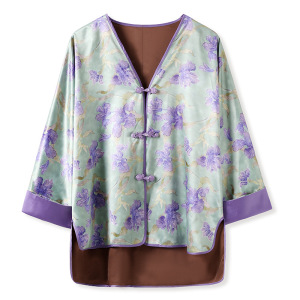 新中国風ジャケット、民族風花柄プリント、おしゃれで着痩せ効果のあるジャケット、春秋向け、軽やかな高級感のあるトップス M4119
