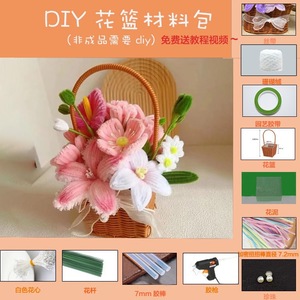 ピンクの蓮のバスケット素材パッケージ - フラワーバスケット - 適合するグルーガン