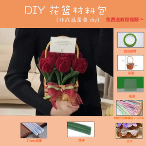 ツイストバスケットdiy花束自作材料包チューリップヒマワリ手作り花は友人の親友にプレゼントする