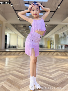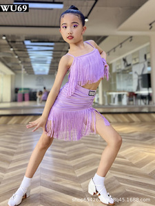 高級ラテンダンスの練習服の女性専門児童表の演出服の子供のガーターのフリンジスカートのラテンダンスの夏