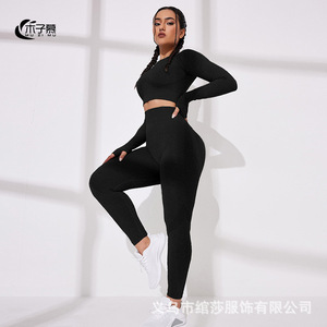 シームレスヨガウェアスポーツスーツ、欧米風カットアウトデザイン、高強度アウトドアフィットネス、ハイウエスト、タイトフィット、女性用、通気性、速乾性