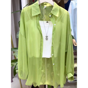 珠光糸日焼け止めシャツコート女性用夏の薄い氷感超滑り通勤外着カーディガン軽薄上着ブーム