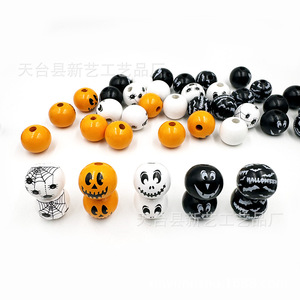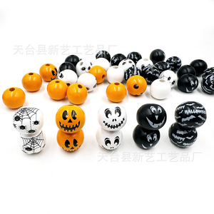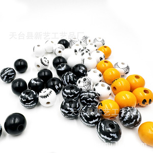 20mmハロウィーン木珠プリント鬼顔木珠蜘蛛網木珠装飾玉手作りdiyアクセサリー部品
