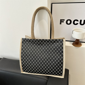 2024春夏新作大容量カジュアルレトロ格子プリントキャンバスバッグファッション脇下手提げショルダーバッグ